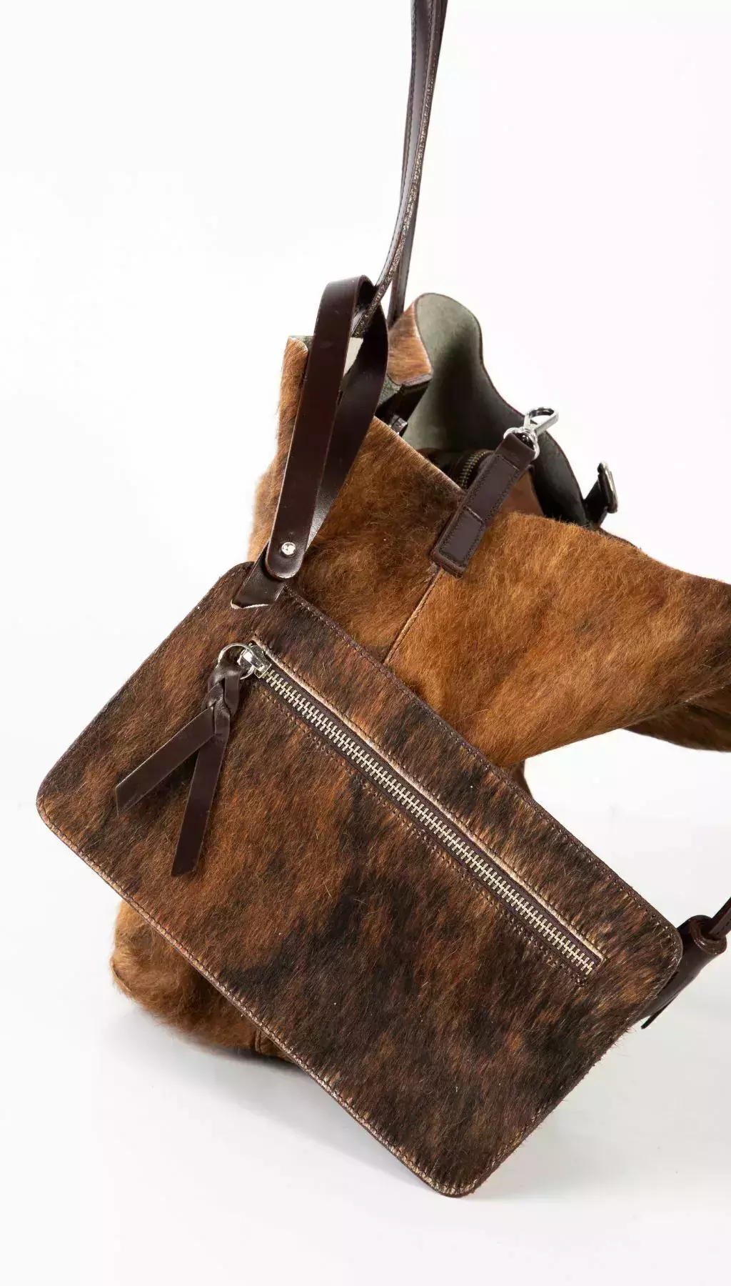 Es importante tener en cuenta que los bolsos, carteras y accesorios que incorporan pelo vacuno pueden presentar diferencias al modelo de la foto.
